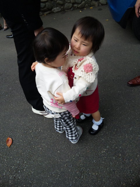 披露宴まで、時間があるので神社内を散策していたのですが、飽きたらしく道路でダダをこねている凛ちゃん![]()