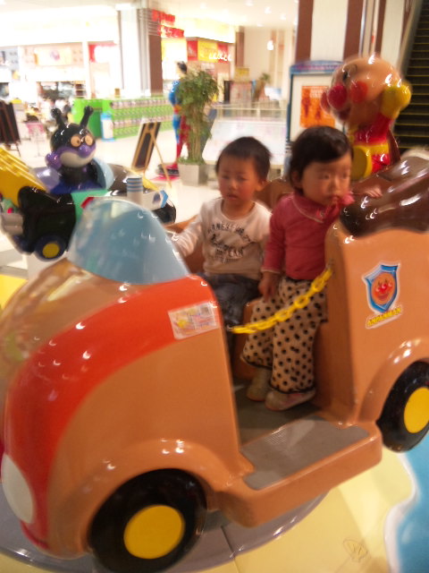 アンパンマンの乗り物に乗った2人![]()