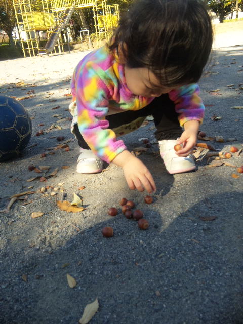 公園にはどんぐりがいっぱい落ちています![]()