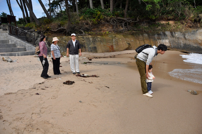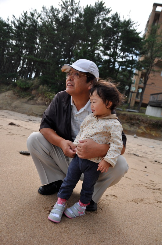 海にたたずむ、凛ちゃんとじぃちゃん・・・