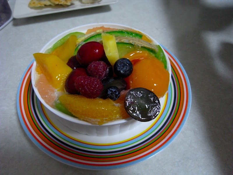 パパが千疋屋で、フルーツがたっぷりのったババロアを買って早めに帰宅してくれました![]()